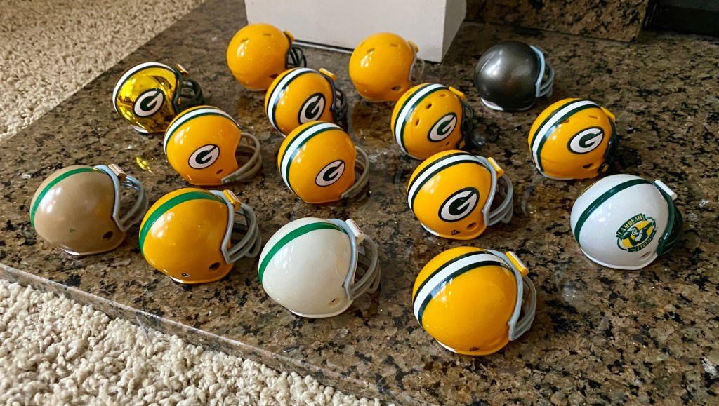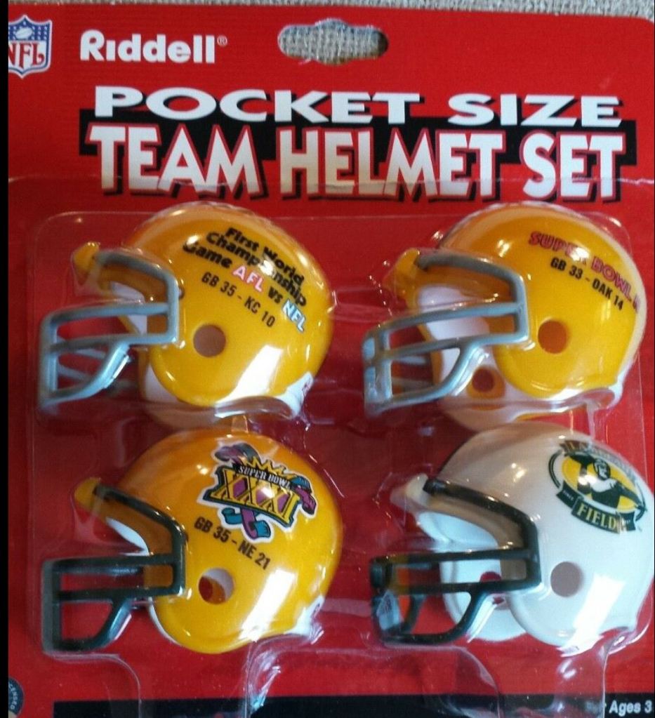 There are six Packers Super Bowl pocket pro helmets: