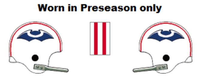 3. 1982-90, 2002, 2010-12, 2022 – present throwback:: White helmet, Patriot Pat logo, red-white-blue-white-red stripes, white facemask