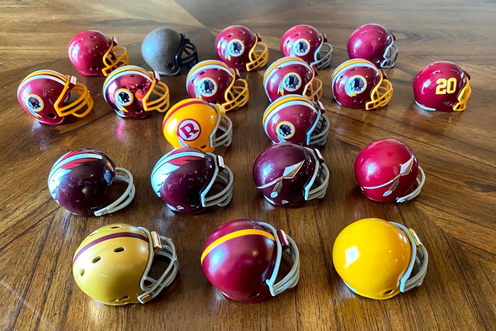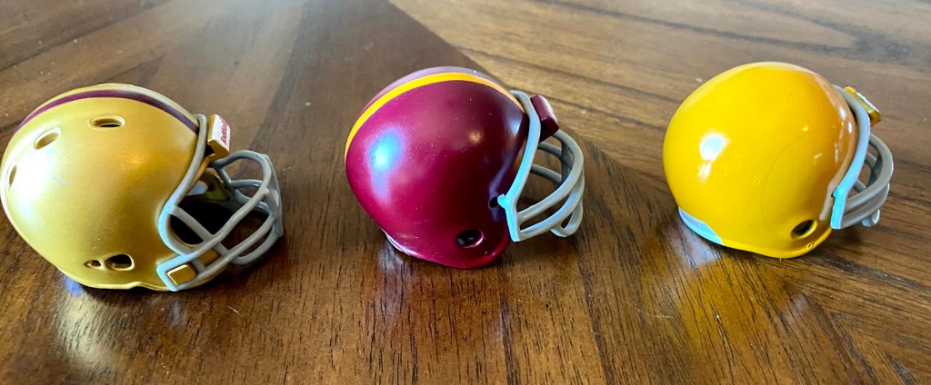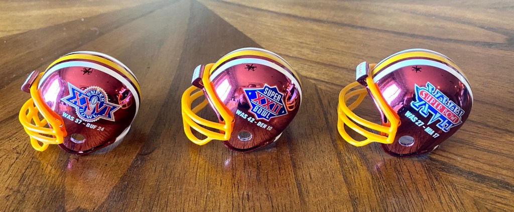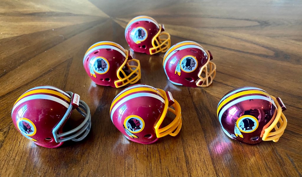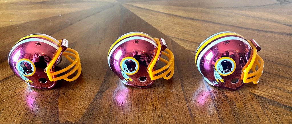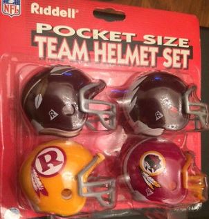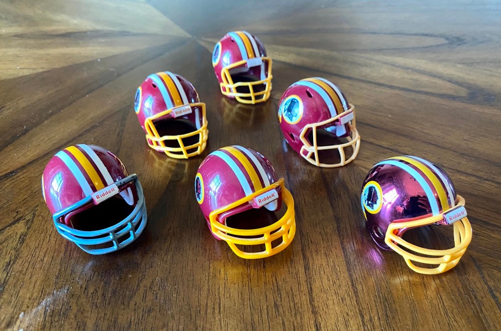 These helmets were only sold in this set. Note the different helmet colors, but identical super logos. The set also included a ‘hall of fame’ helmet that had nothing to do with the Washington team.
