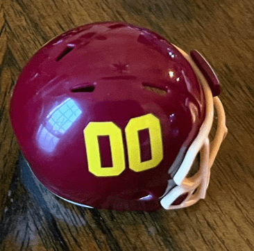 The Commanders changed the team name and helmet in 2020. The factory helmet has a “00” number.