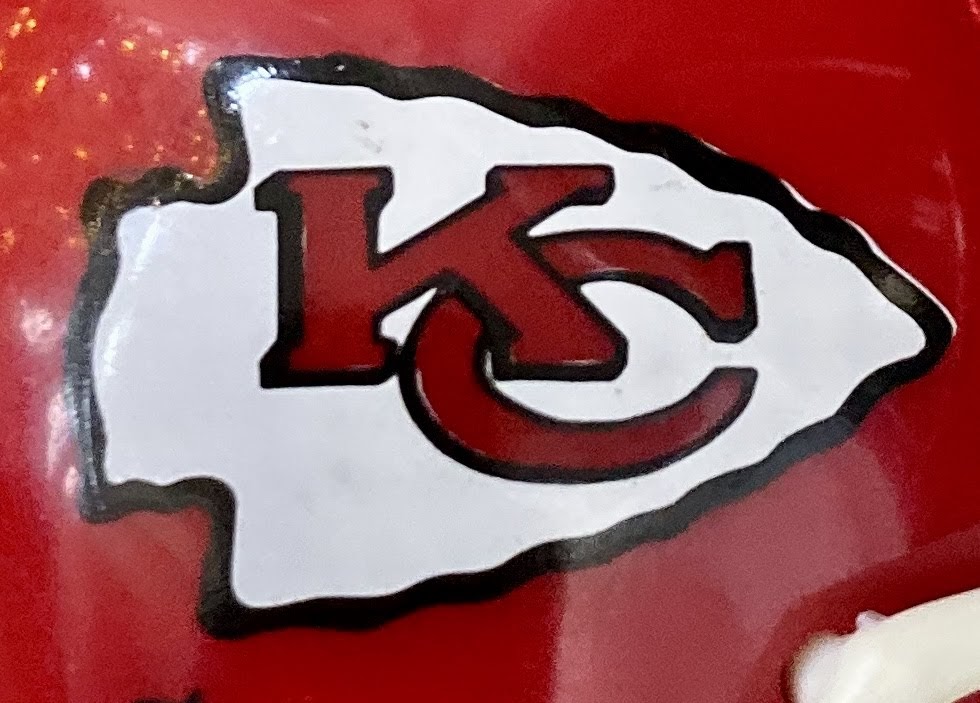 “When Hunt moved the team to Kansas City, the story goes he himself drew out the new logo in his kitchen on a dinner napkin…sketching out a design influenced by the San Francisco 49ers’ interlocking-S-F, but with an arrowhead framing the letters K-C instead of the football-shaped-oval on the Niners’ helmet. That design debuted in 1963 and, aside from a slight reshaping of the logo in 1974 (the arrowhead was made a bit smaller and the K-C a bit larger), it has remained the Chiefs helmet design for over 50 years. And rightly so. The Chiefs’ bold yet dignified helmet looks as sharp today as it did a half century ago” – from Bill’s Sports Maps