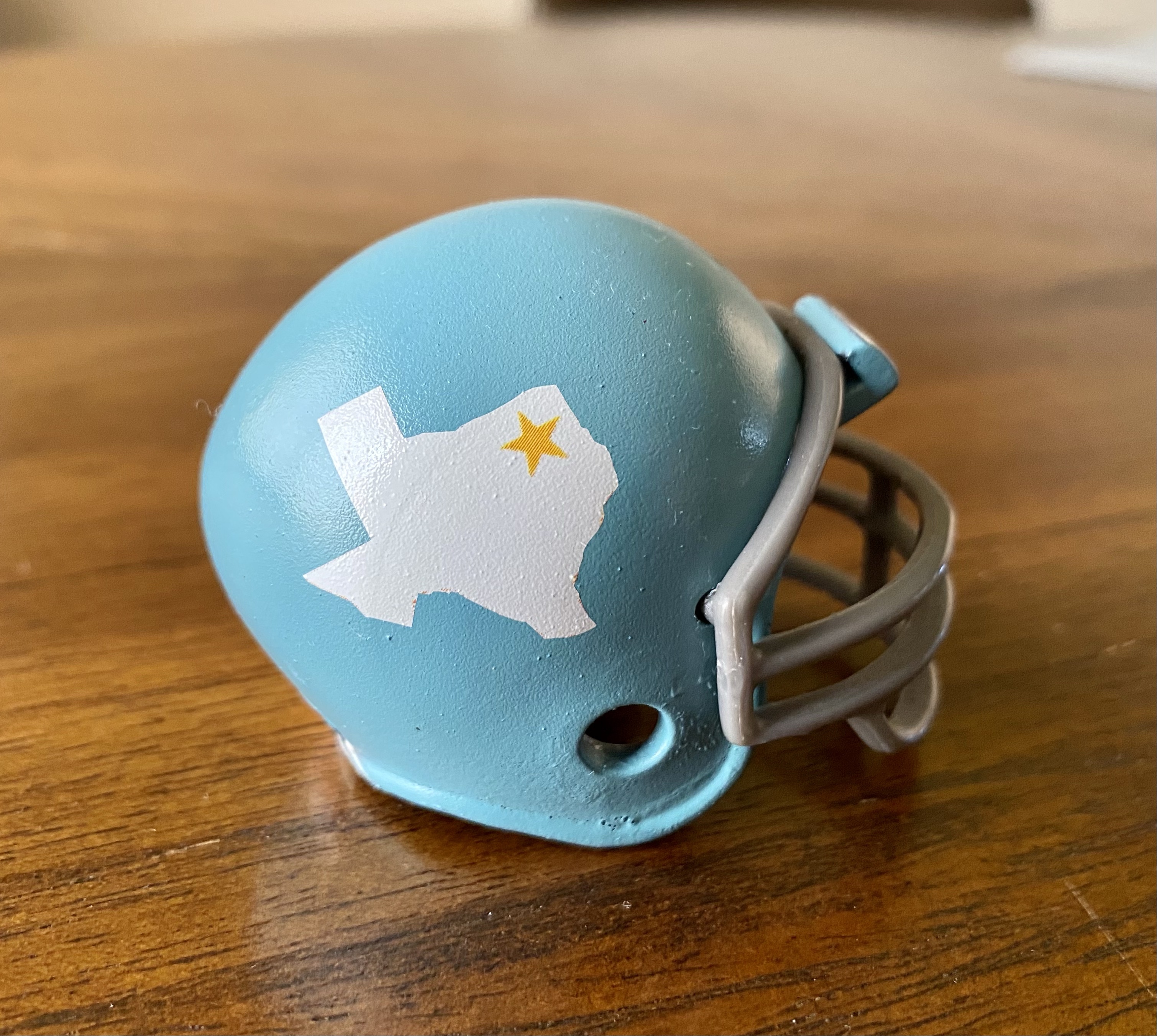 The Dallas Texans (later the KC Chiefs) apparently proposed a blue helmet. The story I have read is that when AFL teams were selecting colors, the Houston Oilers selected their colors first. The first Oilers helmet is also Columbia Blue. So, the Texans decided to go with red.